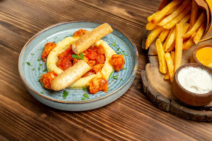 4 x Crispy fried chicken strips & house sauce.